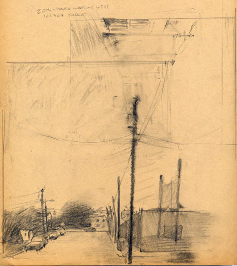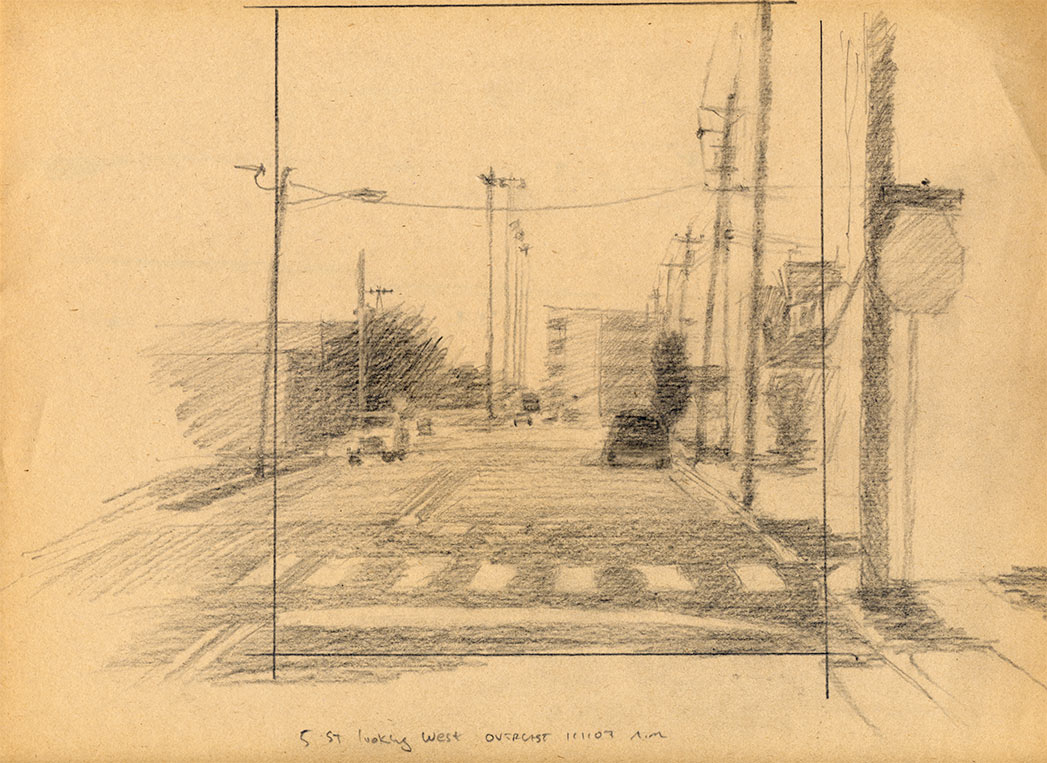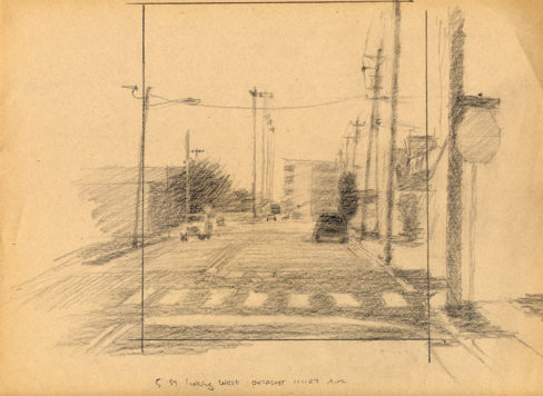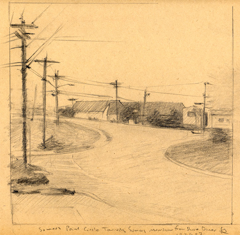 Fifth Street Looking West – Ocean City, graphite on paper, 8 1/2 x 11 1/2, 2007