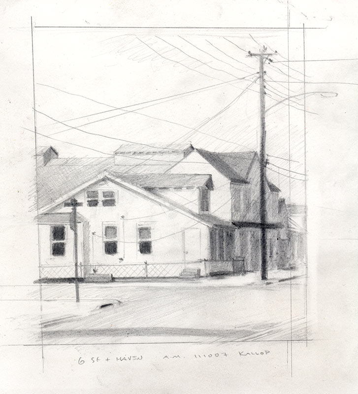 Sixth and Haven – Ocean City, graphite on paper, 9 x 8, 2007