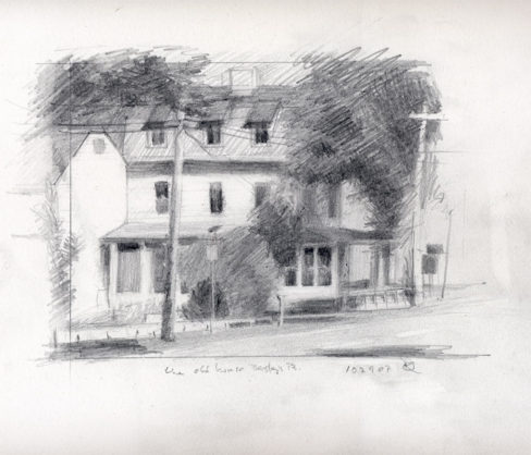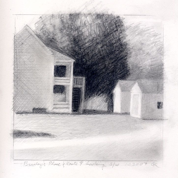 House at Beasley’s Place and Route 9, graphite on paper, 7 x 7, 2007