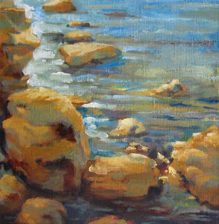 Rocks at Castiglioncello, oil on linen, 15 1/4 x 15