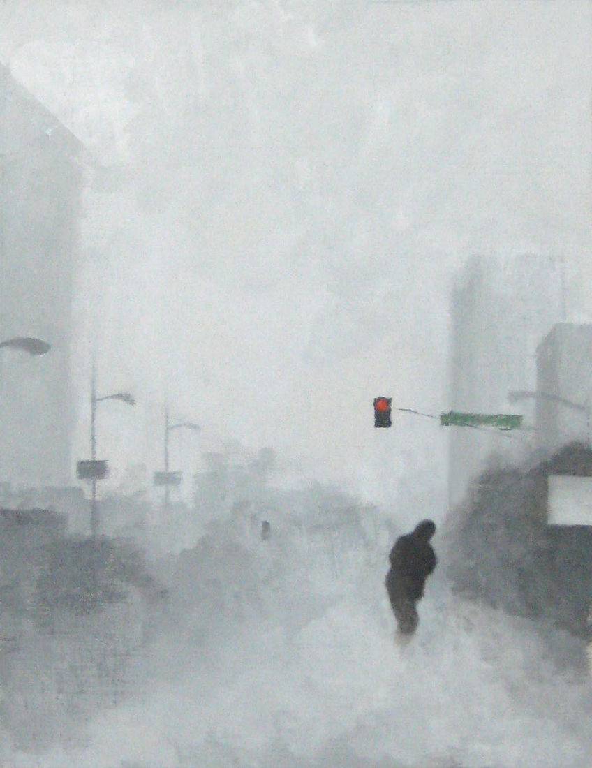 Snow Scene in a Beach Town, oil on canvas, 13 x 11, private collection
