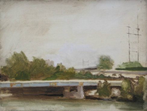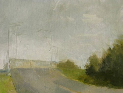 Bridge at Corson’s Inlet in the Rain, oil on linen panel, 11 3/4 x 16, 2007
