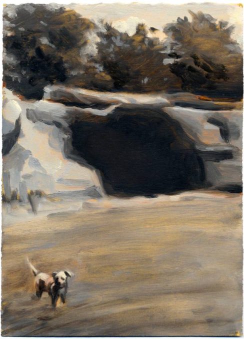 Dog, Field, Cave, oil on paper, 12 x 7, 2007