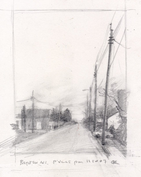 Bayview Avenue – Pleasantville, graphite on paper, 6 x 5, 2007
