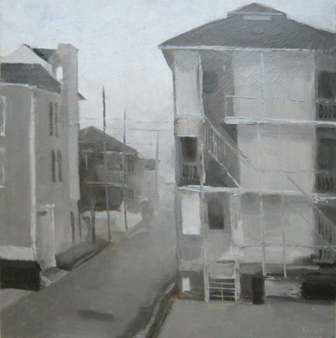 Alley in a Beach Town – Fog, oil on panel, 12 x 12, private collection