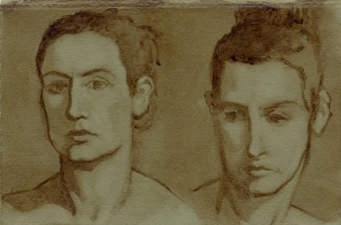 Two Heads, oil on paper, 5 x 7.5, 2005