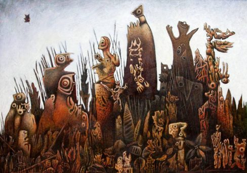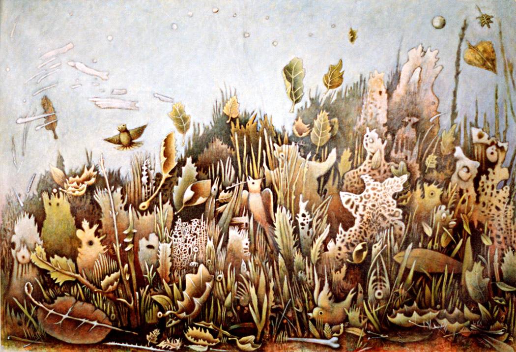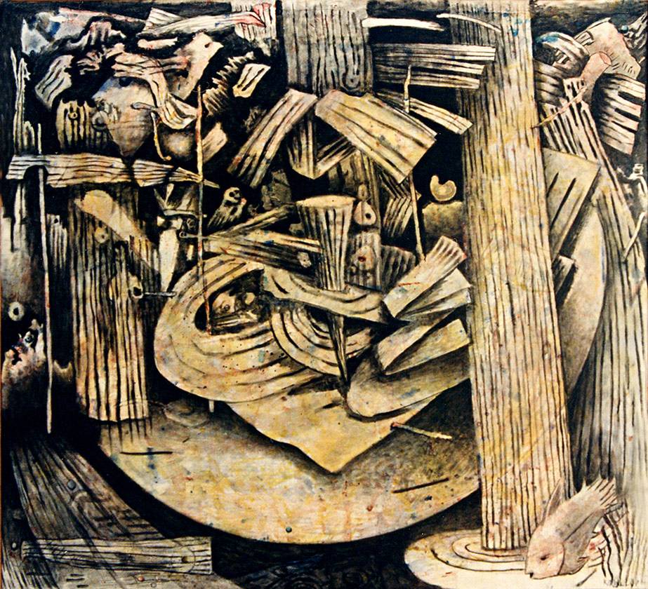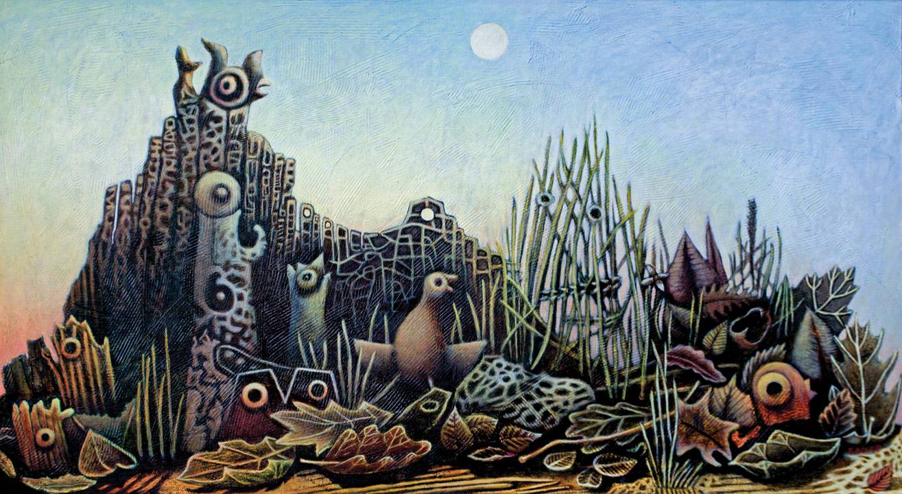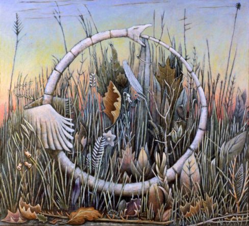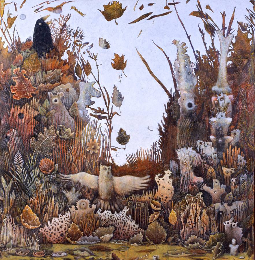 The Strange Unrest of Illusion, 1995 acrylic/canvas 46 x 44, private collection (also print at 21 5/8 x 21)